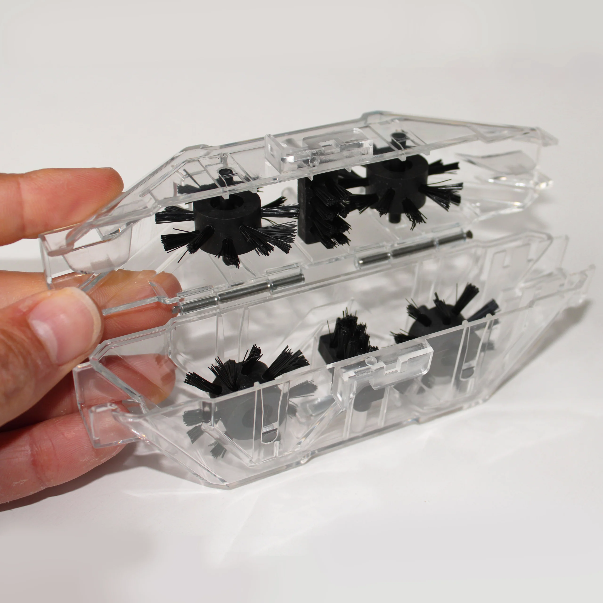 Voorkom vieze handen en maak je ketting grondiger schoon met de Flowter Chainwash. Met normale schoonmaakborstels kan je moeilijker bij de kleine openingen van de ketting, iets waar dit apparaat van Flowter geen moeite mee heeft. De borstels in de reiniger behandelen de ketting net zo volledig als bij de carwash en zorgt ervoor dat jij lekker droog en schoon blijft.De werking van dit apparaat is ontwikkeld door Flowter en heeft borstels die de ketting van alle kanten behandelt. Het omhulsel is van doorzichtig ABS plastic zodat je een goed overzicht kan houden van het proces. De meegeleverde handle zorgt ervoor dat je gemakkelijk de ketting door het apparaat heen haalt.